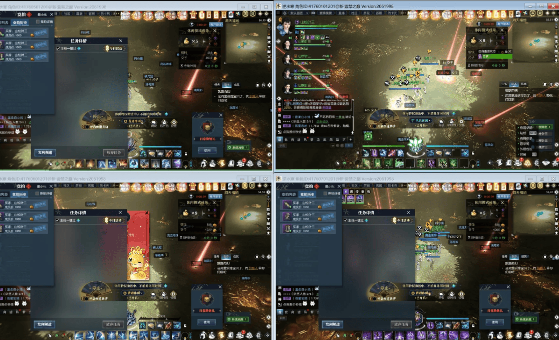 看到这位哥们的桌面上,确实布满了逆水寒的客户端,每个角色都在马不停蹄地完成自己的任务,看起来十分热闹。