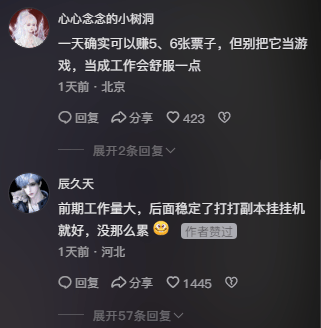 在帖子的下方有不少玩家赞成他的说法,黄金服确实是遍地黄金,只要勤劳是可以每天赚好几张钞票,但架不住想多赚点钱就得辛苦点,把游戏当做工作来对待,前期工作量比较大,后期稳定了每个号只需要做常规挂机和副本,月入上万轻轻松松没问题。